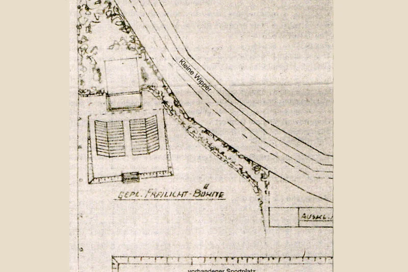 So ist auch der Bau unserer Freilichtbühne am Rande der Anlagen (Stadtpark) zu verstehen, die ebenfalls ein Stück Geschichte jüngeren Datums darstellt. Angelehnt an dem sich erhebenden Anhydritberges unterhalb der Georgshöhe und abgeschlossen durch den Busch- und Baumbestand der Anlagen, entstand eine ebene Fläche von 1.320 qm als Freilichtbühne. Ein idyllisches Plätzchen am Nordrand unserer Stadt.