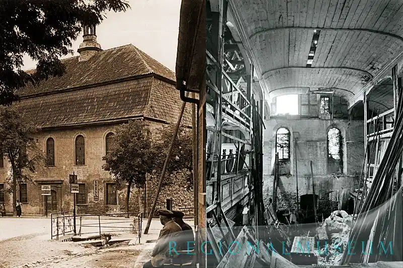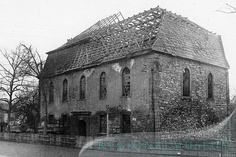 1756 wurde das Dach aufgesetzt, am 14. Mai 1757 der Turmknopf, in welchen die hier verwerteten Nachrichten eingelegt waren. Die erste Leichenpredigt hielt 1758 der Superintendent Johann Christoph Fritsch bei Beerdigung des Bürgermeisters Johann Christoph Scheidt; die erste Rede in der Kirche hielt am 13. November 1758 der Diakonus Johann Alexander Kirchheim »zu einer höchſtbedrängten Zeit, da man wegen der beſtändig ein- und ausmarſchierenden franzöſiſchen Truppen in großer Gefahr und Sorge lebte«. Der Kirchhof reichte von der Zinkestraße an südlich bis zu der Ecke, wo die große Linde steht (wurde abgeholzt, I . M .) im Osten und quer durch bis zu der Stelle im Westen, wo die alte Kalksteinmauer in eine Sandsteinmauer übergeht (ist heute noch nachzuvollziehen, I.M.).