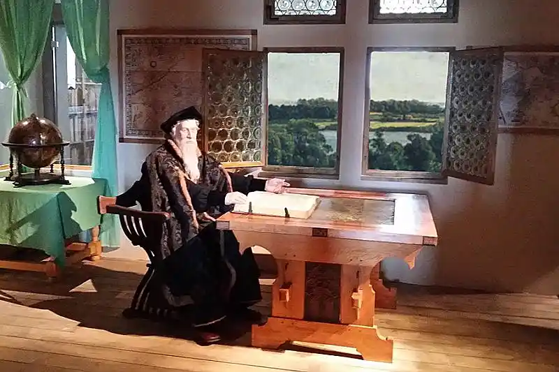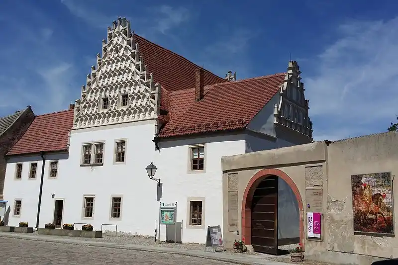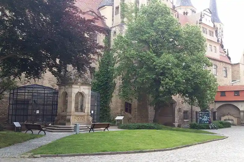 Das Gleiche passiert in Naumburg und in Zeitz. Dort muss er ebenfalls einen katholischen Bischoff einsetzen, den Julius von Pflug. Der ist eigentlich sehr umgänglich. Er hat auch das Interim mit entworfen, gewissermaßen auf einer Ebene des Ausgleiches. Im Bild zu sehen eine Darstellung in Zeitz in der Moritzburg, eine Inszenierung in einer Ausstellung, sehr empfehlenswert.