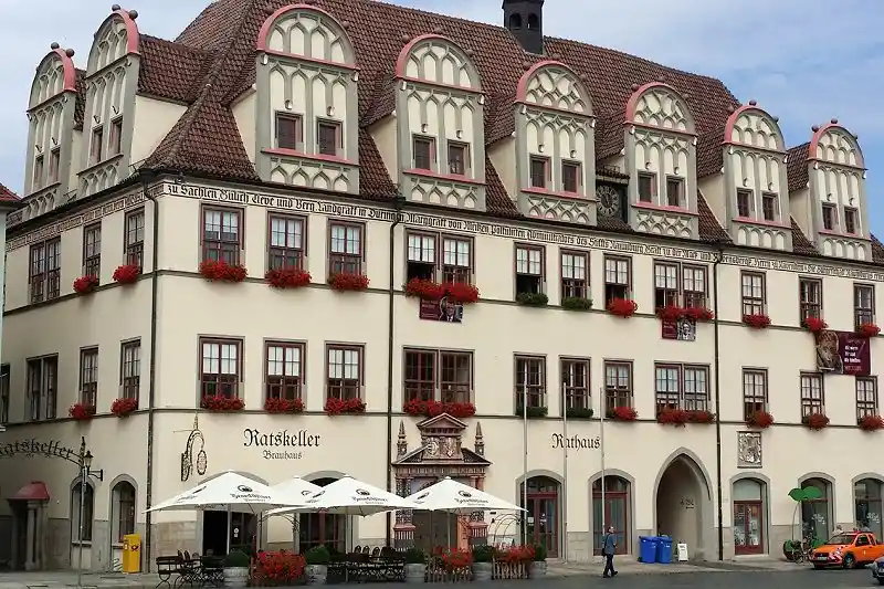 Auch heute ist davon noch etwas zu sehen. Der Vertrag heißt »Naumburger Vertrag«. Am Rathaus in Naumburg ist eine Umschrift an der Fassade angebracht, dort kann man noch einiges lesen. Dieser sogenannte »Naumburger Vertrag« von 1554 führt dazu, dass im Ergebnis das Amt Sachsenburg von den Albertinern in Dresden an die Ernestiner abgetreten wird und auch die Oberlehenshoheit über das Amt Allstedt, welches wieder an Graf Albrecht zurückfällt, der es nun wieder in Besitz nehmen kann.