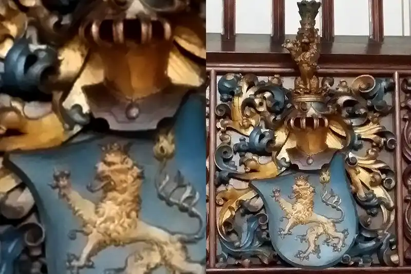 Das ändert sich erst, als August der Starke zwecks polnischer Königskrone und ganzer Liebelei auf einmal Katholik wird. Sichtbar ist diese Akzeptanz auch heute noch. Wer sich damals zum Luthertum bekannt hat, der durfte sich dann auch später in Wittenberg in der Schlosskirche im Chorgestühl verewigen. Wir sehen hier zweimal das Schwarzburger Wappen, einmal für Sondershausen und einmal für Schwarzburg-Rudolstadt. Der Löwe nach rechts schreitend und einmal nach links schreitend.