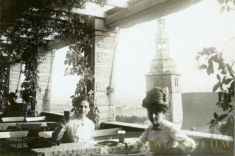 Nun, selbst nach Einhundert Jahren gibt es für Schulklassen und die Thematik »Eintritt in Museen und Denkmale« keine einheitliche Regelung in Thüringen. Einige Mitglieder des Wirteverein für Frankenhausen und Umgebung beließen es nicht allein bei der Herausgabe von Ansichtskarten ihrer Lokalitäten. Sie investierten zum Teil kräftig in ihre Gasthäuser. Der Inhaber der Wirtschaft auf der Rothenburg bekam im Sommer 1910 für den Ausbau der gastronomischen Möglichkeiten, besonders der Saalerweiterung, höchstes Lob gezollt. Und das nicht allein aus dem Munde des Redakteurs der »Frankenhäuser Zeitung«, sondern aus allerhöchsten Kreisen. Für Fürstin Anna Luise zu Schwarzburg (1871-1951) war es die beliebteste Ausflugsgaststätte im Kyffhäusergebirge. Unvoreingenommen mischte sie sich unter die Ausflügler. In ihrer Begleitung oftmals die Schwiegermutter der Königin der Niederlande, Großherzogin Marie von Mecklenburg-Schwerin (1850 - 1922), ihre Schwägerin. Schließlich hatte das »Schwarzburgische Land« reichlich zum Liebesglück zwischen der Niederländerin, Königin Wilhelmina (1880 - 1962) und dem Mecklenburger Prinzen Heinrich (1876 -1934) beizutragen. Zwischen Oberkirche und Hausmannsturm gelegen, setzten am Gasthaus Frankenburg ab 1909 erhebliche Baumaßnahmen ein. Rudolf Schröder, der Inhaber, glaubte die Chancen nutzen zu müssen, die sich aus der wunderschönen Lage oberhalb der Stadt ergaben.