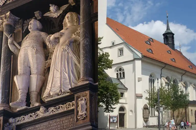 (1583–1627), ursprünglich Oberkirche (re.), jetzt in der Unterkirche (li.)