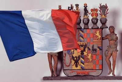 Das Wappen wurde im 18. Jahrhundert über der Eingangstür zum Schloss angebracht, wahrscheinlich an der gleichen Stelle, an der noch im 17. Jh. Wappen- und Inschriftensteine zu sehen waren. Herausgenommen und im Schloss verwahrt wurde es in den 40er Jahren des 20. Jh.