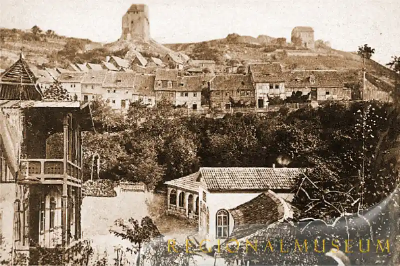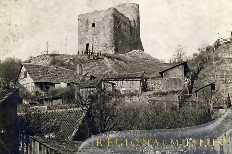 Aus diesem Grunde wird das Gebäude auch wohl die Frankenburg genannt. Bis vor etwa 50 Jahren war der Hausmannsturm noch bewohnt, diente dem Feuerwächter als Aufenthalt und hatte bis 1860 noch das Aussehen, wie er es in den letzten Jahrhunderten gehabt hatte, und wie es auf einem alten Bilde, das im Sitzungszimmer des Rathauses hängt, für die Nachwelt erhalten ist. In einer überaus stürmischen Februarnacht dieses Jahres stürzte aber das Dach des Turmes ein und seitdem war das Bauwerk eine Ruine, die immer mehr zerfiel, aber trotzdem einen ehrwürdigen und romantischen Eindruck machte, der manchen Künstler und Dilettanten veranlasst hat, die Überreste des alten Gebäudes, sei es mit Bleistift oder Kohle und Kreide, mit Wasser- oder Ölfarben auf Papier oder Leinwand oder noch anderen Stoffen im Bilde festzuhalten. Du wirst daher leicht Gelegenheit haben, sehen zu können, wie der Hausmannsturm vor seiner Restaurierung, die im Jahre 1894 vorgenommen ist, ausgesehen hat, denn es existieren noch viele Bilder aus dieser Zeit.