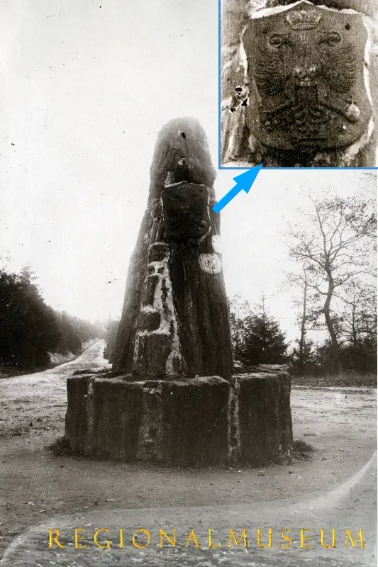 mit Schwarzburger Wappen auf dem Kamm des Kyffhäusers, im Hintergrund der Fahrweg nach dem Kyffhäuser-Denkmal, um 1910
